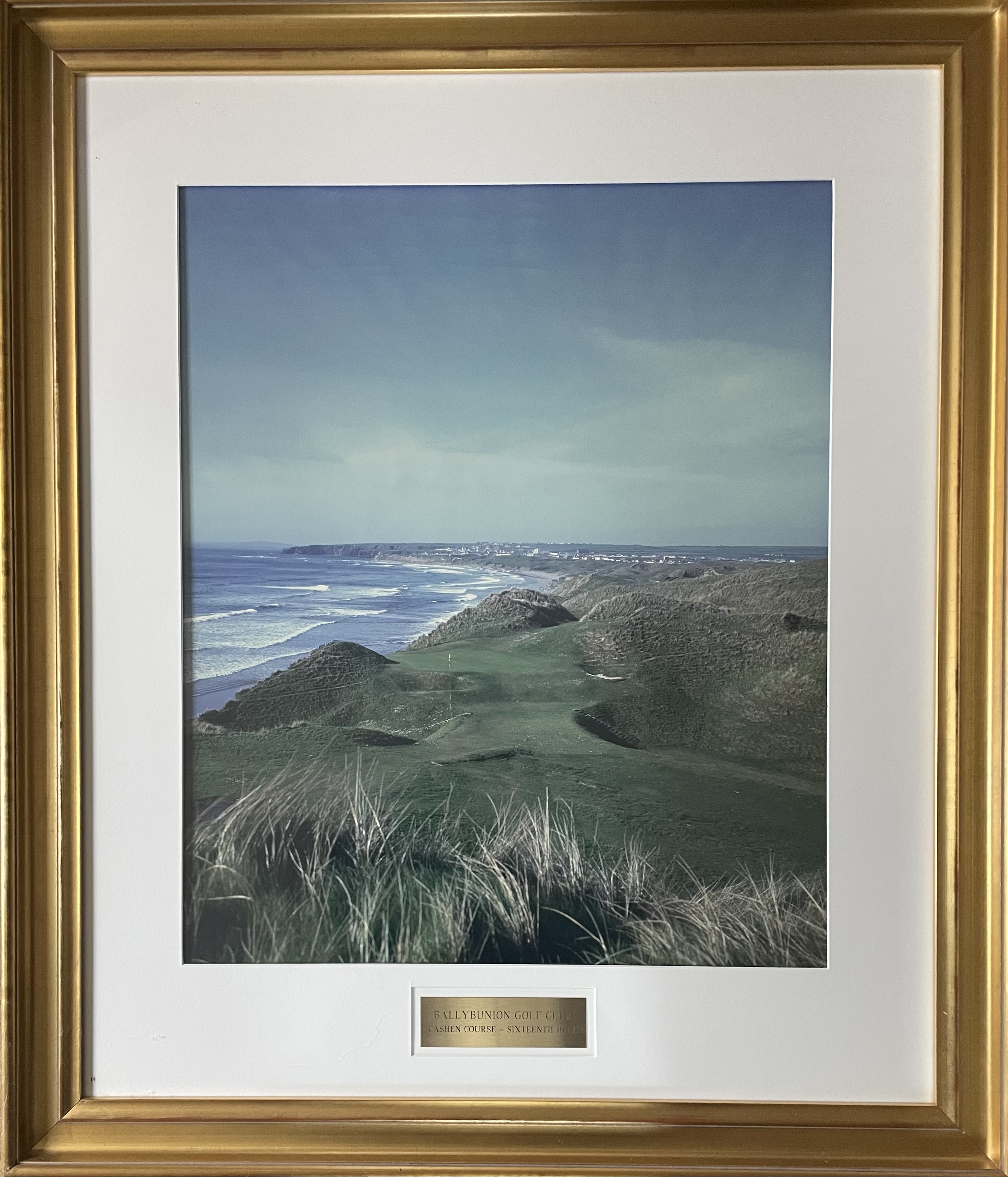 ~ HISTORIC BALLYBUNION GOLF CLUB ~ CASHEN COURSE - 16TH HOLE BEAUTIFULLY FRAMED & MATTED PLUS ATTACHABLE PICTURE LIGHT MAKES ANY ROOM MORE INTERESTING (30" X 35") |