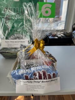 “It’s a Philly Thing” Basket (Men’s) “You Gotta Know Philly” Trivia Game Men’s “Unapologetically Philly” T-Shirt (blue) Large bag of Goldenberg’s Peanut Chews Wawa $25 gift card Wawa insulated coffee mug |