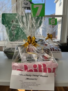 “It’s a Philly Thing” Basket (Women’s) Ladies “Unapologetically Philly” T-Shirt (pink) “You Gotta Know Philly” Trivia Game Large bag of Goldenberg’s Peanut Chews Wawa $25 gift card Wawa insulated coffee mug |