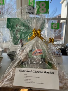 Wine and Cheese Basket Pennsylvania-themed cutting board Wine Cheese slicer 3 boxes of crackers ALDI $25 gift card (for cheese purchases) |