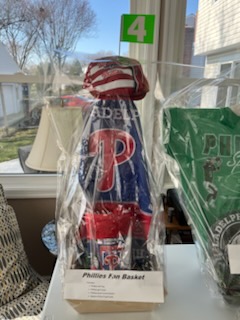 Phillies Fan Basket Phillies Jeff Cap Phillies golf towel Phillies plush throw blanket Sleeve of Max-Fli golf balls |